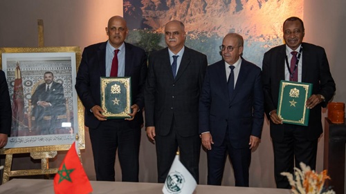وفي ختام اللقاء، قدّم معالي الوزير لمعالي المدير العام هدية تذكارية تمثلت في نماذج من الصناعة التقليدية المغربية. يُذكر أن معالي البروفيسور إبراهيم الدخيري كان قد وصل إلى المغرب مساء الثلاثاء الموافق 28 أكتوبر 2025، وشارك صباح اليوم التالي إلى جانب معالي الوزير في افتتاح المؤتمر الدولي الرابع عشر للتمور بالمغرب بمدينة أرفود. وقد قام الجانبان بجولة داخل أروقة معرض التمور، تلتها مراسم توقيع اتفاقيتين للتعاون بين المملكة المغربية والمنظمة العربية للتنمية الزراعية، تتعلق الأولى بوثيقة البرنامج النموذجي لدعم تنمية الواحات في المغرب، فيما تخص الثانية تنفيذ هذا البرنامج بالشراكة مع الوكالة الوطنية لتنمية الواحات وشجر الأركان والمركز الوطني للبحوث الزراعية.