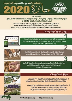 شاركت المنظمة العربية للتنمية الزراعية ممثلة في مكتب المنظمة في الإقليم الأوسط العربي بالقاهرة ، يوم الخميس الموافق 17 ديسمبر 2020 ، في الندوة النقاشية حول سياسات الإدارة المستدامة لأراضي المراعي" والتي عقدت في مركز التنمية المستدامة لموارد مطروح، محافظة مطروح، بجمهورية مصر العربية - المزيد .... |