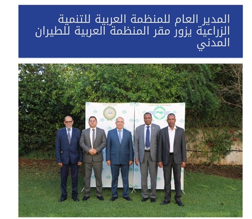 وقد هنّأ معاليه المنظمة الإسلامية بانضمام هذه القامة الثقافية المرموقة إلى طاقمها، وتم الاتفاق على أن تساهم المنظمة العربية للتنمية الزراعية في المجلة بمقالات متخصصة في مجالات عملها. أما في زيارة المنظمة العربية للطيران المدني، فقد تركز النقاش حول أوضاع العمل العربي المشترك وسبل تعزيز التنسيق بين المنظمات المتخصصة، إضافة إلى استعراض نتائج الجمعية العامة لمنظمة الطيران المدني الدولية (ICAO)، التي عُقدت مؤخراً في مدينة مونتريال بكندا، والتي شهدت فوزاً مميزاً لعدد من الدول العربية بعضوية مجلس المنظمة. وبذلك اختتم معالي المدير العام زيارته الرسمية إلى المملكة المغربية، التي شهدت نشاطاً مكثفاً عكس حرص المنظمة العربية للتنمية الزراعية على تعميق التعاون العربي المشترك في مجالات التنمية الزراعية والعلمية والبيئية.